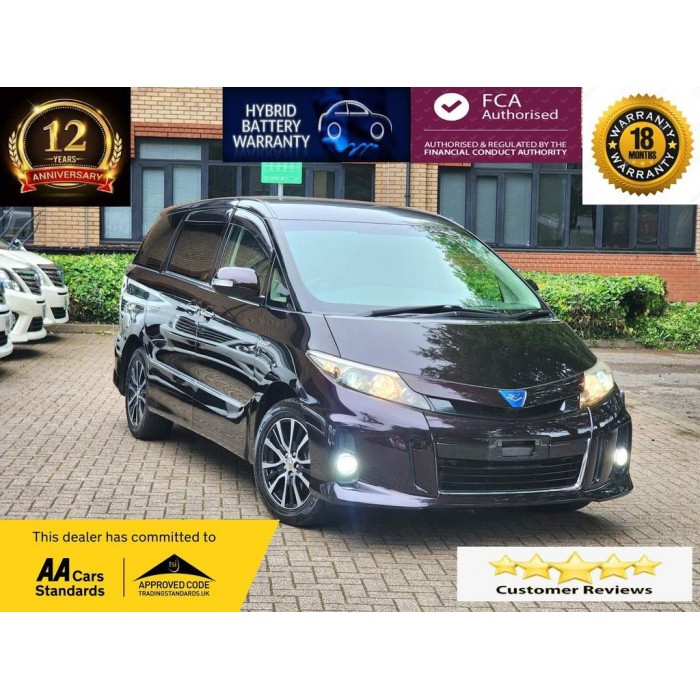 VEHICLE REF CODE: 2234************VIEWING BY APPOINTMENTS ONLY************ 2014 TOYOTA ESTIMA 2.4L PETROL HYBRID, FACE LIFT NEW MODEL, FRESH JAPANESE IMPORT AND NEVER USED IN UK, WARRANTED LOW MILES, JUST SERVICED, 7 SEATS, BEAUTIFUL IN METALIC BURGENDY/MAROON COLOUR, HALF LEATHER SEATS, BOTH ELECTRIC DOORS, ELECTRIC TAIL GATE, REVERSE CAMERA, 10 INCH ANDRIOD UK STEREO WITH GOOGLE MAPS SAT NAVIGATION, WIFI & BLUETOOTH, BEAUTIFUL ALLOW WHEELS, CRUISE CONTROL, ELECTRIC DRIVER SEAT, AIR PURIFYING SYSTEM, CLEAN CAR, GOOD TYRES, JUST SERVICED, DRIVES VERY WELL, FIRST TO SEE WILL BUY, 1 YEAR MOT, 18 MONTHS WARRANTY INCLUDING HYBRID BATTERY, 1 YEAR FREE AA BREAKDOWN COVER, ULEZ COMPLAINT, FIXED PRICES, NO NEGOTIATIONS , 18 months warranty, 12 months MOT, Excellent bodywork, Black Part leather interior - Excellent Condition, Tyre condition Good, Metallic MAROON, Viewing Location: GSATUK LTD, ASTON COURT, KINGMEAD BUSINESS PARK, HIGH WYCOMBE, HP111JU, £13,980, This is an imported vehicle